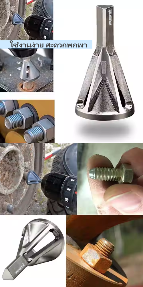 ดอกลบคม เกลียวนอก สินค้าใหม่และคุณภาพดี 2. สามารถซ่อมแซมสลักเกลียวที่เสียหาย ได้อย่างรวดเร็ว เพื่อร้อยน็อตให้แน่น 3. ทำให้กระบวนการซ่อมแซมง่ายขึ้น ไม่จำเป็นต้องเปลี่ยนอุปกรณ์ให้ยุ่งยาก 4. ใช้งานที่ความเร็วต่ำสุดก่อน จากนั้นจึงใช้แรงกดเล็กน้อยเพื่อลบครีบ-ลบคม 5. เหมาะสำหรับสว่านหัวจับทุกชนิด ใช้ได้กับเหล็ก สเตนเลส อลูมิเนียม ทองแดง ไม้ ไฟเบอร์กลาส อื่นๆ ข้อมูลจำเพาะ: วัสดุผลิตจาก : สเตนเลส สตีล ขนาดเกลียวโตที่ใช้ได้ : เกลียวโตเบอร์ #8-32 (4 มม. ) ถึง เบอร์ 3/4″-10 (19 มม.) ขนาดดอก : ด้านในโต 22 มม.(0.87 นิ้ว) ด้านนอกโต 28 มม.(1.10 นิ้ว) |