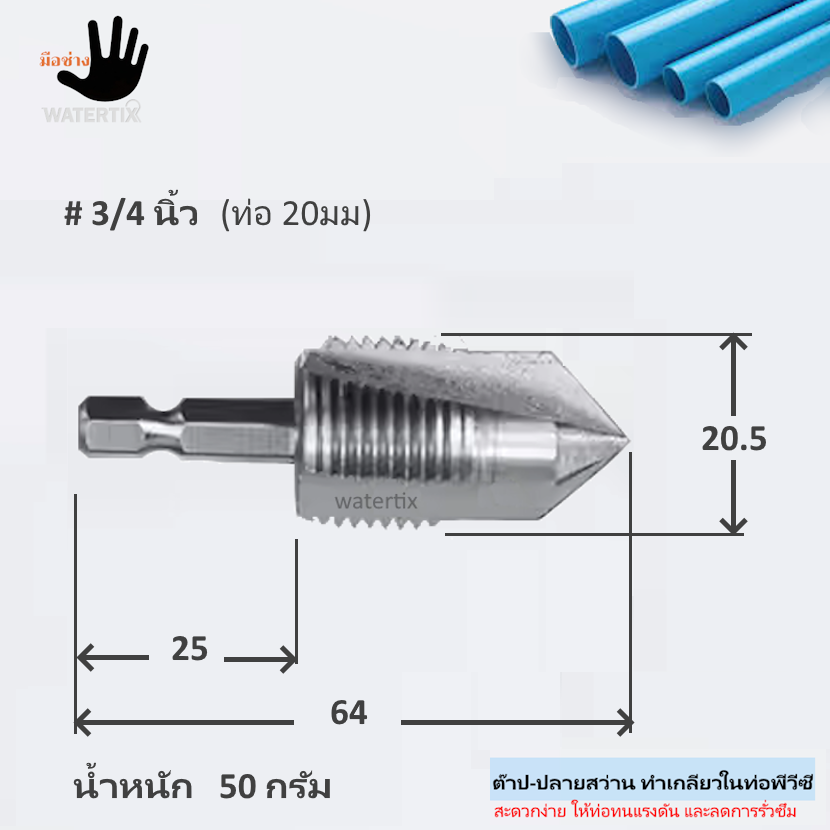 *ให้คุณภาพงานดี: ดอกต๊าปเกลียว-ปลายสว่าน 3 ใบมีด ช่วยให้ต๊าปได้อย่างรวดเร็ว ช่วยให้คุณสร้างเกลียวอย่างง่าย และรวดเร็ว ช่วยให้การติดตั้งและซ่อมท่อน้ำเสร็จเร็วและมีประสิทธิภาพ *ฟังก์ชันการใช้งานขยายรูปและต๊าปในครั้งเดียว: ออกแบบมาให้เครื่องมือนี้รวมการต๊าปเกลียวและ การเจาะขยายรูเข้าด้วยกันได้อย่างลงตัวในอุปกรณ์เดียว *เทคโนโลยีนวัตกรรมใหม่: ดอกสว่านนี้ใช้เทคโนโลยี ออกแบบที่เป็นเอกลักษณ์เฉพาะเช่น แรงตัดและการประคองระดับ ที่ช่วยเพิ่มประสิทธิภาพและความทนทาน และมีความแม่นยำสูง *ใช้งานได้ง่าย: การทำงานที่เรียบง่ายของเครื่องมือช่วยให้ทั้งผู้รับเหมาและผู้ใช้งานที่บ้าน สามารถจัดการต่อท่อได้อย่างมีประสิทธิภาพ *ขนาดกะทัดรัดและพกพาสะดวก: ดอกสว่านนี้น้ำหนักเบาและพกพาสะดวก ทำให้เหมาะสำหรับทั้งงานในสถานที่และโครงการที่บ้าน |
