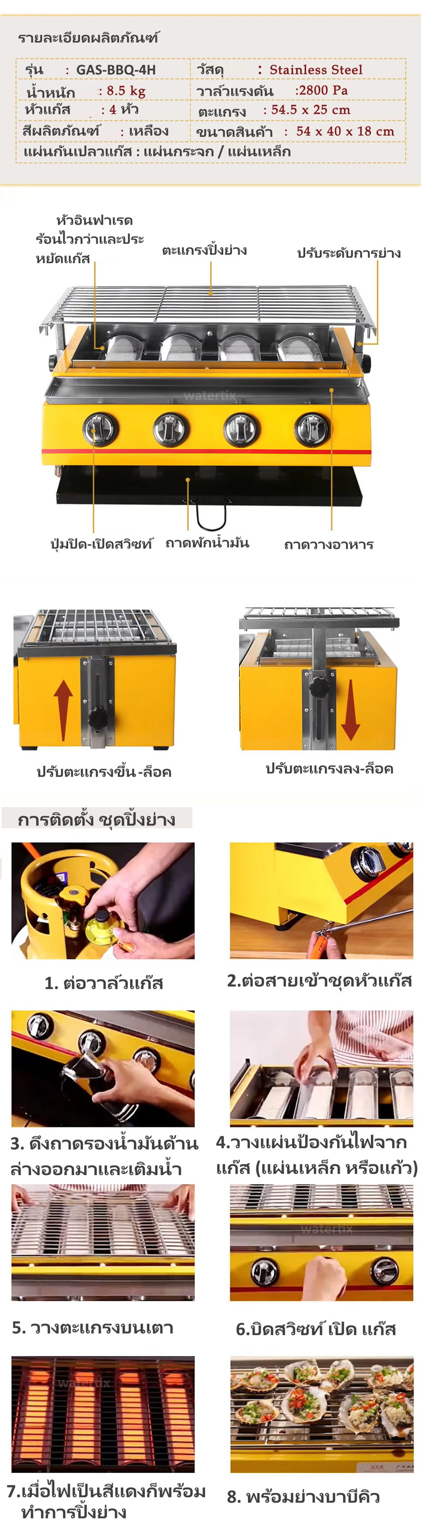 เตาแก๊ส อินฟาเรด 4 หัว ปิ้ง-ย่างบาบีคิว
